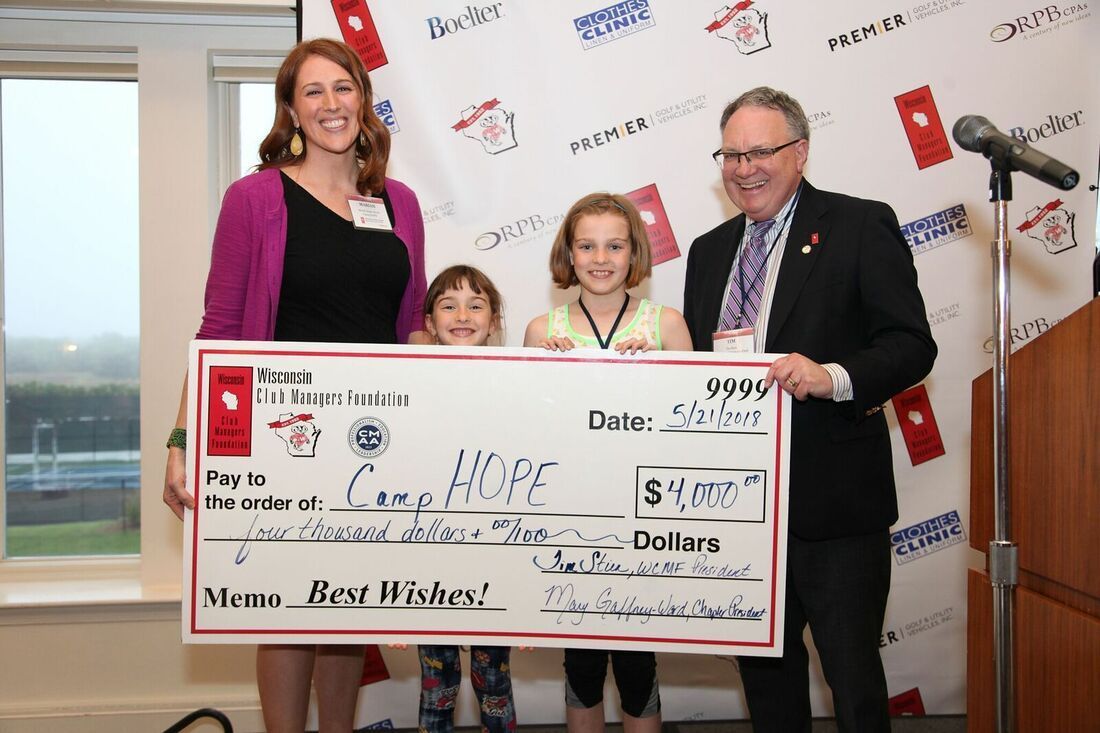 Provide funds for our continued support of Camp Hope. A wonderful place in central Wisconsin where children and teenagers gather to work through the grieving process after losing a loved one, and the host club's Charity of Choice.